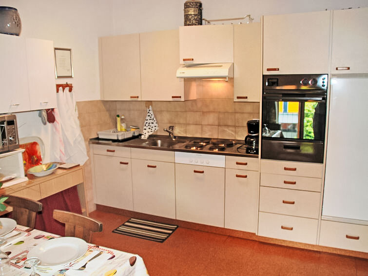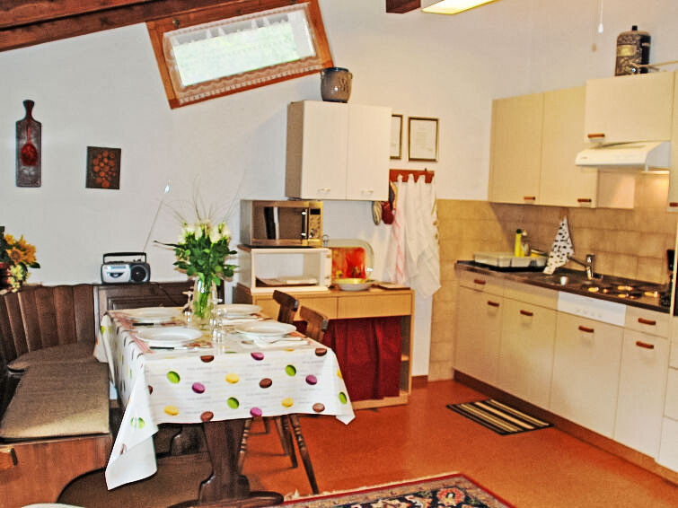 "Tre G OG", appartement 3-kamers 64 m2 op de 1e verdieping. Ruim, doelmatig en rustiek ingericht: open woon-/eetkamer met Kabel-TV (Flatscreen TV), radio. Uitgang naar het balkon. 1 2-pers. kamer met 1 2-pers bed (2 x 90 cm, lengte 200 cm). Uitgang naar het balkon. 1 kamer met 2 bedden (90 cm, lengte 200 cm). Open keuken (4-pits kookplaat, oven, magnetron, elektrische koffiemachine, pads voor de koffiemachine (Nespresso mitbringen) extra) met eettafel. Douche/bidet/WC, dubbele wastafels. Olie-verwarming. Klein balkon 10 m2. Balkonmeubilair, ligstoelen. Uitzicht op de plaats. Ter beschikking: kinderstoel, kinderbed tot 2 jaar (extra), haardroger. Internet (Internet (WiFi), gratis). Parkeerplaats bij het huis. Niet rokers woning. NL-00005081
