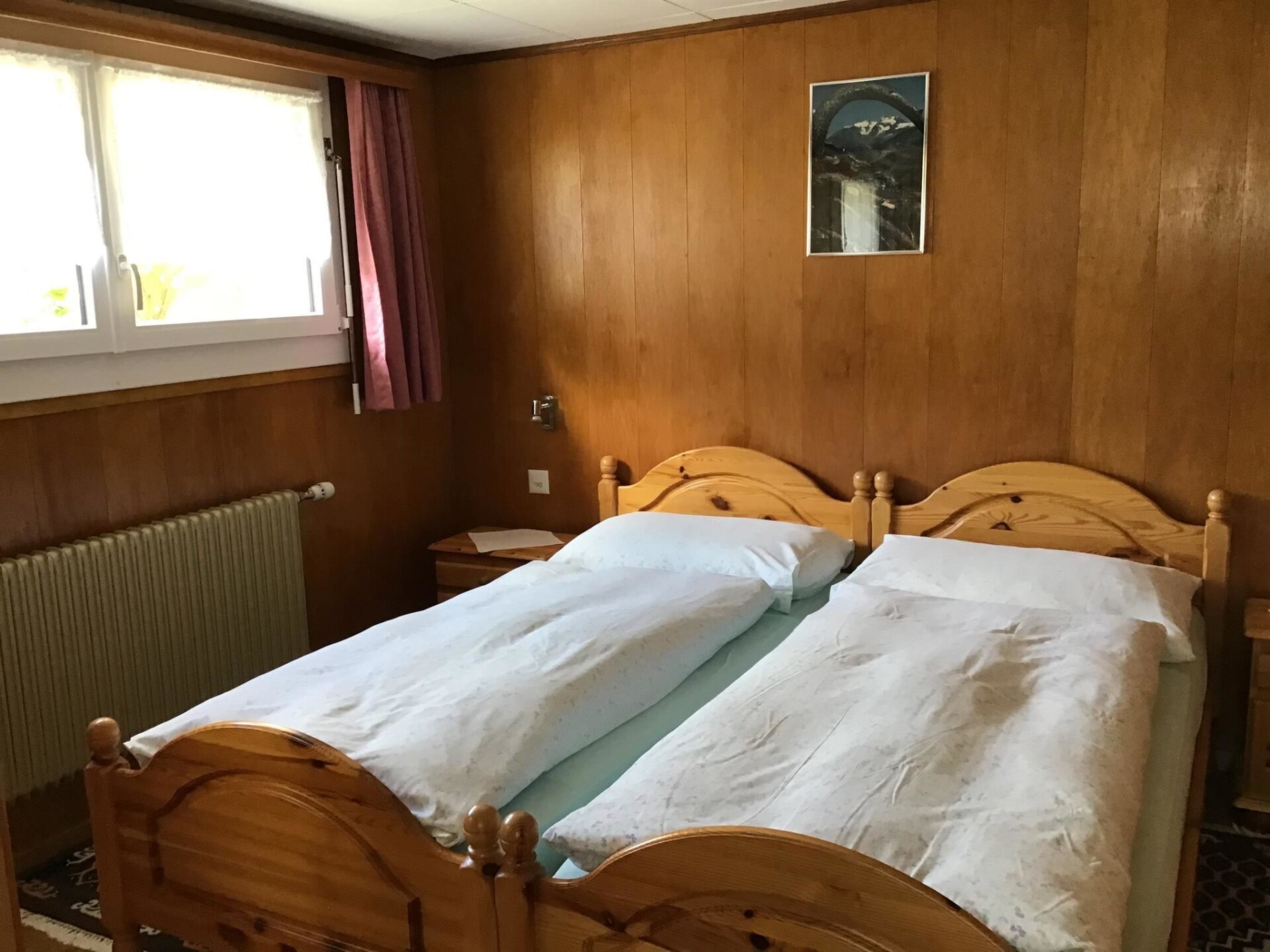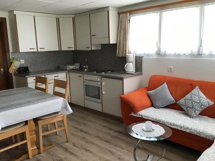 3-room apartment (65 m2), ground floor, 2 double bedrooms, large dining kitchen, bath/WC, TV, large forecourt, the bedrooms are timbered.