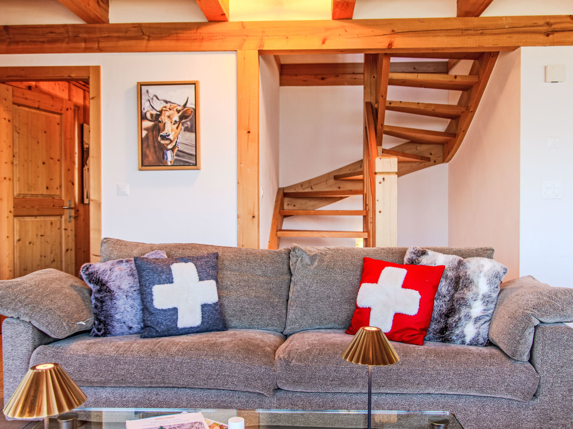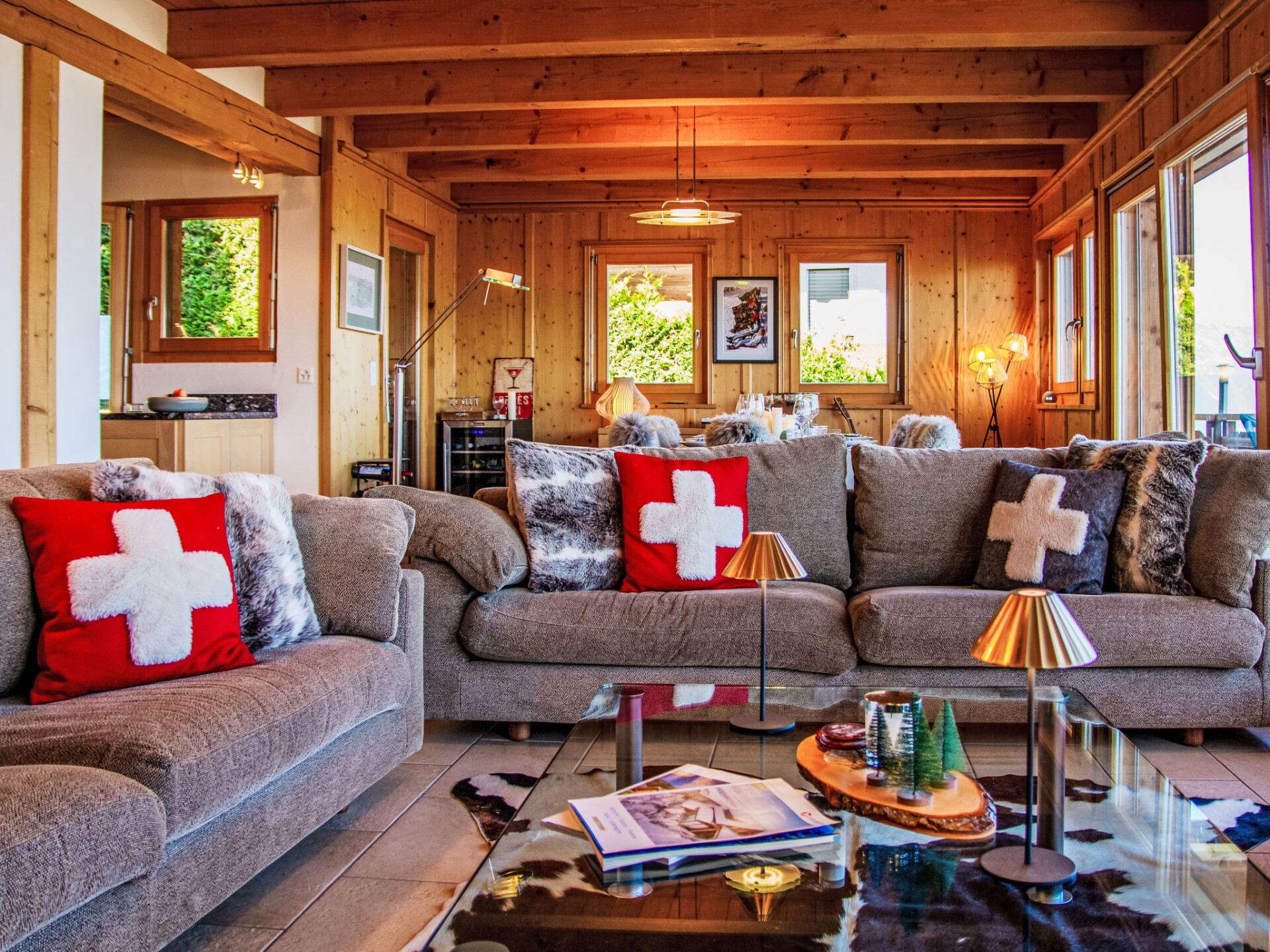 "Chalet Aurore", chalet 5-kamers 190 m2 op 3 verdiepingen, op het noordwesten gelegen. Ruim, comfortabel en smaakvol ingericht: hal. Groot woon-/eetkamer met open haard en TV. Uitgang naar het balkon, op het noorden. Open keuken (oven, afwasmachine, 4 keramische glas kookplaten, broodrooster, waterkoker, magnetron, diepvriezer, elektrische koffiemachine, pads voor de koffiemachine (Nespresso) extra, raclette oven, fondue Set (kaas)). Uitgang naar het terras. Aparte WC. Elektrische verwarming. Souterrain: 2 kleine kamers, elke kamer heeft 2 bedden (90 cm, lengte 200 cm). 1 kamer met 1 2-pers bed (180 cm, lengte 200 cm), douche/WC en dubbele wastafels. Bad/WC, douche. Bovenverdieping: 1 groot kamer met 1 2-pers bed (180 cm, lengte 200 cm), bad/douche/WC, dubbele wastafels, met hoekbad en TV. Uitgang naar het balkon, op het noorden. Balkon, op het noorden gelegen, terras, op het oosten gelegen. Terrasmeubelen, balkonmeubilair, barbecue, ligstoelen (4). Mooi uitzicht op de bergen. Ter beschikking: wasmachine, droger, kinderstoel, kinderbed. Internet (WiFi, gratis). Garage (2 Auto's). Niet rokers woning.